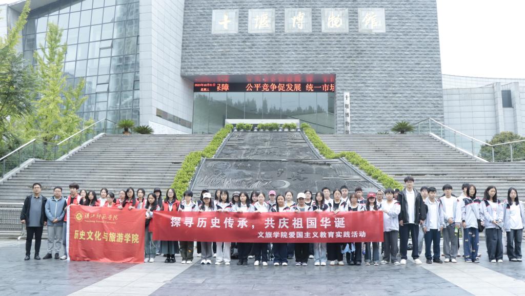 国庆佳节之际,为强化青年学子爱国意识,引导其深入探寻中华文化发展脉络、读懂十堰“山水车城”工业发展历程,10月1日上午8:30,历史文化与旅游学院分党委副书记罗晓忆、辅导员陈吉冲带队,组织60名留校学生前往十堰市博物馆,开展“探寻历史传承,共庆祖国华诞”主题参观活动。活动中,学院依托挂靠社团文旅协会的资源,安排协会成员承担志愿引导与讲解工作,为活动顺利开展提供支持,让同学们在沉浸式体验中感受历史文化魅力。