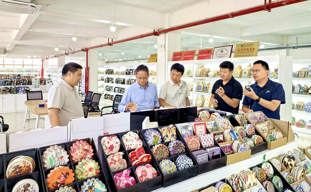 28日上午,调研组走访德化杰沐工艺品有限公司,实地考察陶瓷工艺品设计、生产与销售全流程,感受非遗文化与现代工艺的融合创新。1996级校友、企业负责人罗燕分享了自己的创业历程,表达了与学校在文化创意产品研发、艺术设计专业实践教学等方面的合作意向。肖德表示,学校艺术设计、文旅等专业与企业发展方向高度契合,将依托科研与人才优势为企业提供支持,同时为学生搭建非遗文化实践平台,实现“文化传承、人才培养、企业发展”三方共赢。