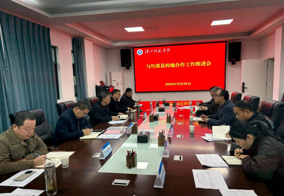 10月24日下午,学校与竹溪县校地合作工作推进会在集贤楼501会议室召开。校党委常委、副校长陈俊出席会议并讲话,学校相关职能部门及部分二级学院负责人参加会议。会议由质量管理与教师发展中心主任夏小林主持。