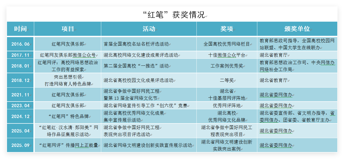 马克思主义学院分党委书记夏金元介绍,从2021年开始“红笔网评”挂靠马院,并凭借“红色基因”“原创内容”“网络传播”鲜明特色入选省级重点网评阵地,获颁“全省网络素养教育示范基地”,获评教育部“首届全国高校网络名栏”、湖北省“优秀网评阵地”等荣誉。师生多件作品入选“共和国追梦人”主题征文比赛,获评湖北省网络宣传好作品奖。依托“红笔网评”开发的校本通识特色课程《网络评论写作素养》获批省级一流本科课程立项。下一步,学院将通过机制建设,将其打造成提升思政课教师业务能力、队伍素质,抓好基层党组织建设,推进人才培养模式改革的重要抓手。