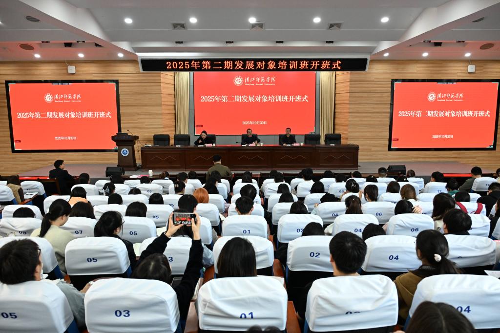 10月30日下午,学校2025年秋季党校第二期党员发展对象培训班在崇文楼C101报告厅开班。党委副书记周明华出席开班仪式并作首场辅导报告,全校144名发展对象参加培训。