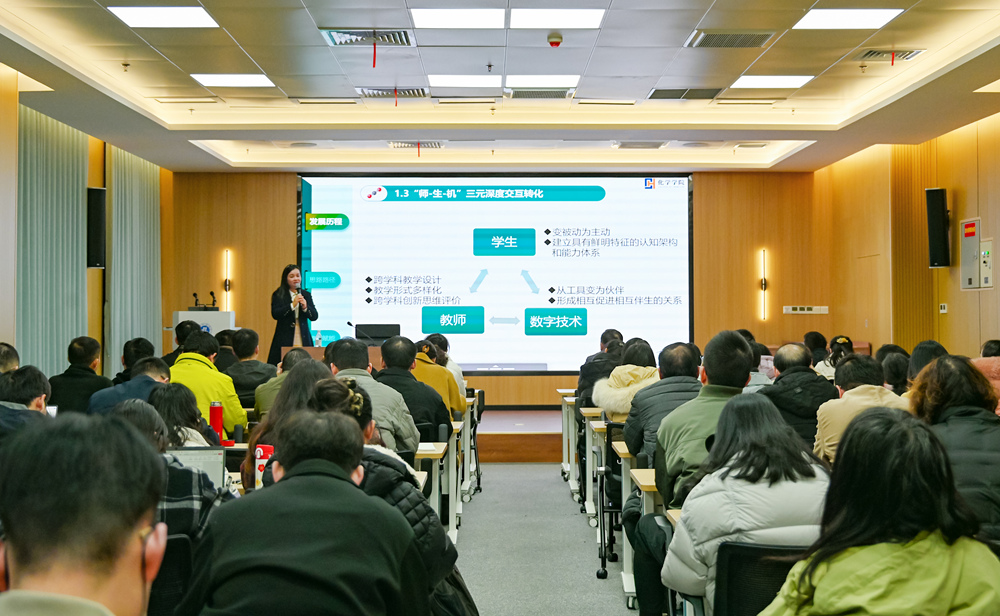 互动环节,教师们围绕“人机协同教学设计”“数据驱动过程评价”“跨学科思政案例开发”等议题踊跃提问,曹敏惠教授结合自身教学实践逐一细致解答,现场研讨氛围热烈。
