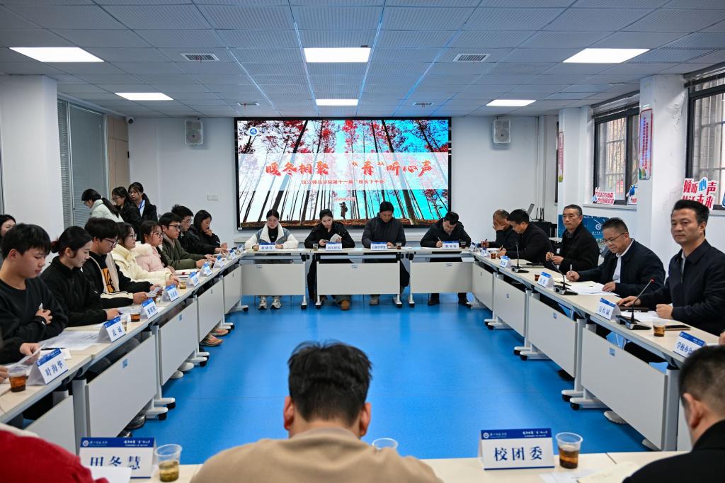 12月19日下午,以“暖冬相聚 ‘青’听心声”为主题的第十一期“校长下午茶”活动在“一站式”学生社区成功举办。党委副书记、校长肖德与同学们交流座谈,党委常委、副校长吴红斌主持活动,党委常委、宣传部部长梁仕新和学校办公室、教务处、学工处、保卫处、基建处、后勤管理处、校团委、体育学院等单位负责人出席。