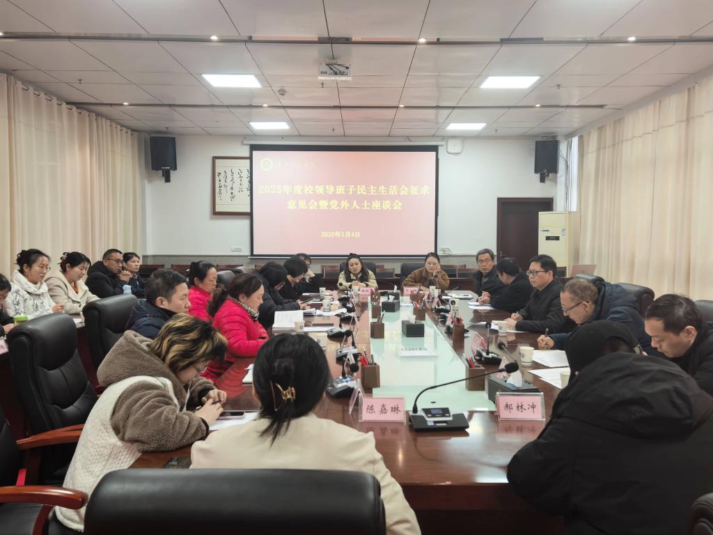为充分发挥统一战线重要法宝作用,广泛汇聚党外人士智慧力量,切实提升校领导班子民主生活会质量,1月4日下午,党委统战部组织在图书馆1号会议室召开2025年度校领导班子民主生活会征求意见会暨党外人士座谈会。党委常委、统战部部长王进出席会议,校内各民主党派成员代表、无党派人士代表、党外知识分子代表等参加座谈。