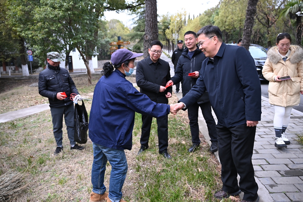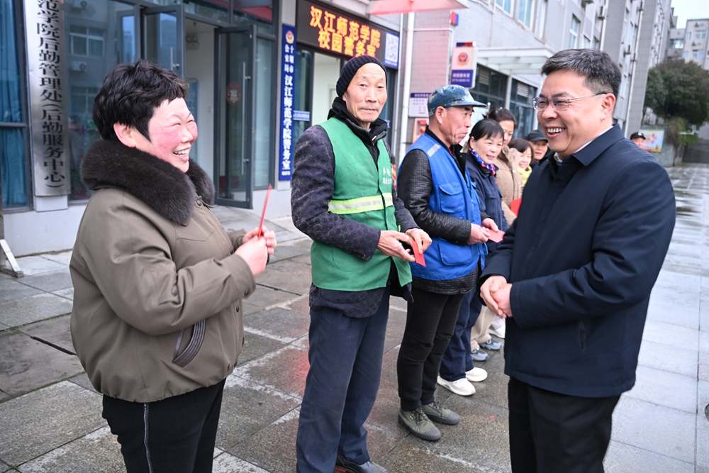 下午,付永昌一行来到丹江口校区,亲切看望并慰问了坚守在该校区的一线教职员工,对大家在过去一年中的辛勤付出表示肯定,并祝愿大家在新的一年里工作顺利、阖家幸福。