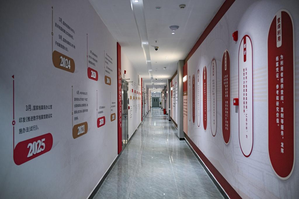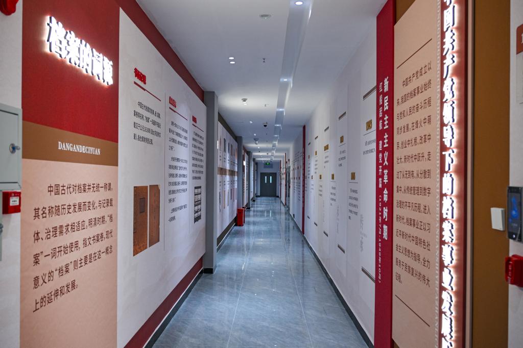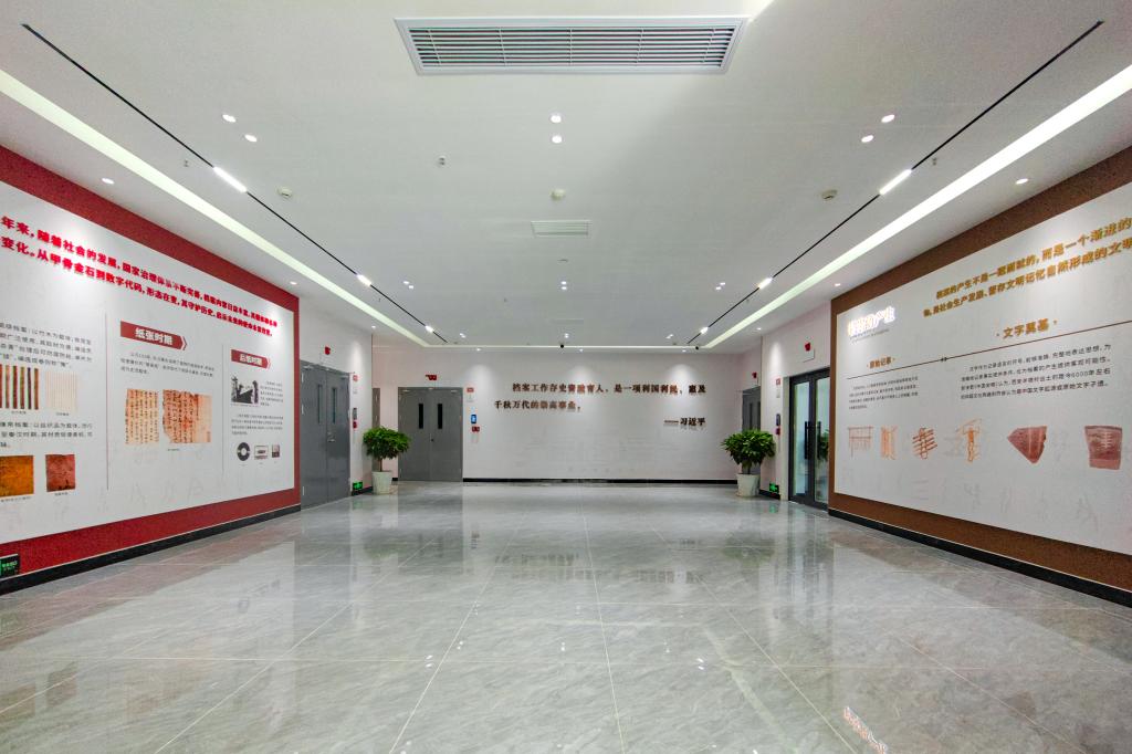 文化展示区以中国档案事业古今发展历程为主线,从六大维度全景展现档案文化的厚重底蕴,让档案文化可观可感、入脑入心。根脉溯源——探寻档案的产生、词源与形态演变,挖掘文明记忆的源头活水;兰台守护——解读档案保管之道与“兰台”文化意象,传承历代护档者守史护国的崇高精神;事业发展——纵览中国档案事业古今发展脉络,见证档案工作与民族复兴大业同频共振;国际视野——放眼档案国际治理体系,彰显中国档案的世界贡献与时代担当;兰台队伍——重温中国档案工作者誓词,致敬兰台人的初心坚守与使命担当;法治保障——普及档案法律法规知识,夯实依法治档思想根基,筑牢国家档案安全防线。