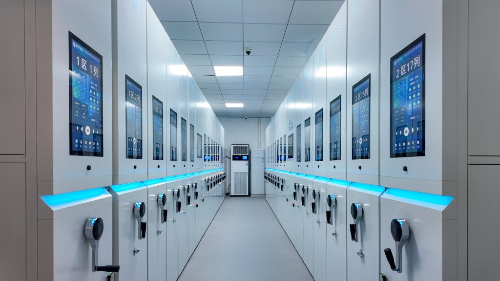 库房区设综合档案、学生档案、财务档案、干部人事档案、实物档案5个专业库房,配备智能密集架与手动密集架,适配多样化档案存储需求;严格对标档案管理“十防”标准,配齐恒温恒湿、气体消防、安防监控、消毒除尘及智能门禁等软硬件设施,为馆藏档案筑牢安全屏障。