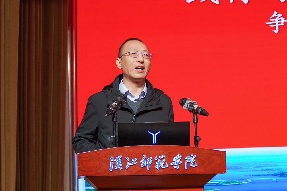 校党委常委、副校长吴红斌致辞。他指出,道德是民族精神的血脉,更是高校立德树人的根本。过去一年,学校在道德建设、学雷锋志愿服务、守水护水、生态文明实践等领域取得了丰硕成果。吴红斌对全体师生提出三点殷切期望:一是以德存心,在修身立德中筑牢思想根基;二是以德践行,在实干担当中彰显育人使命;三是以德聚力,在文明创建中谱写发展新篇。