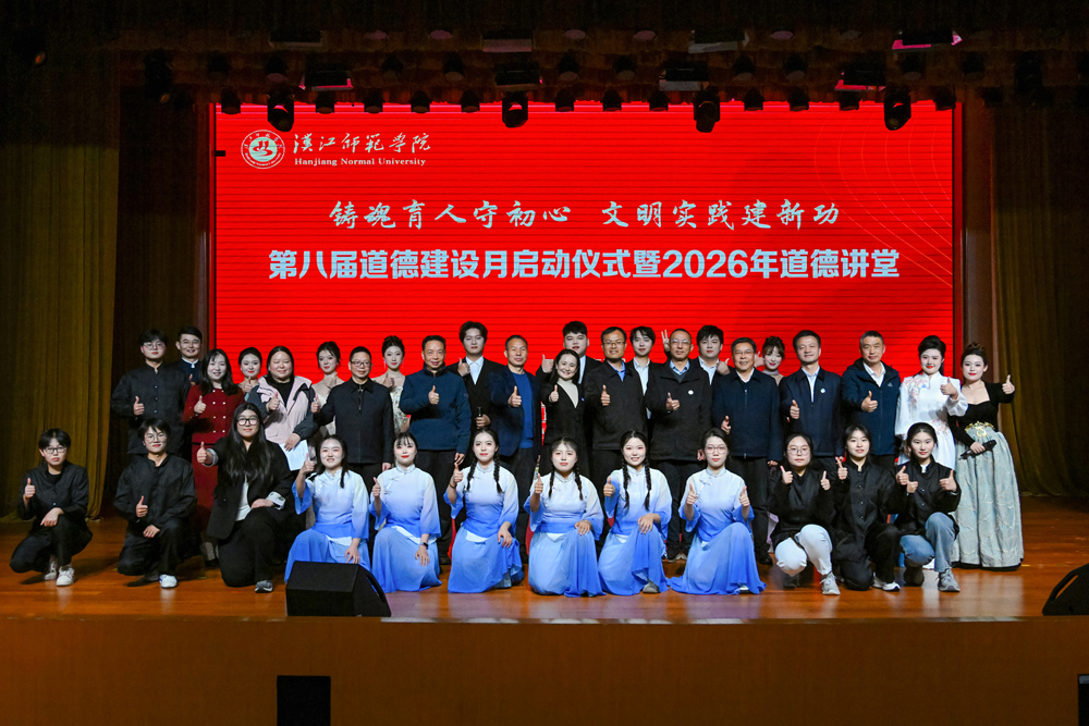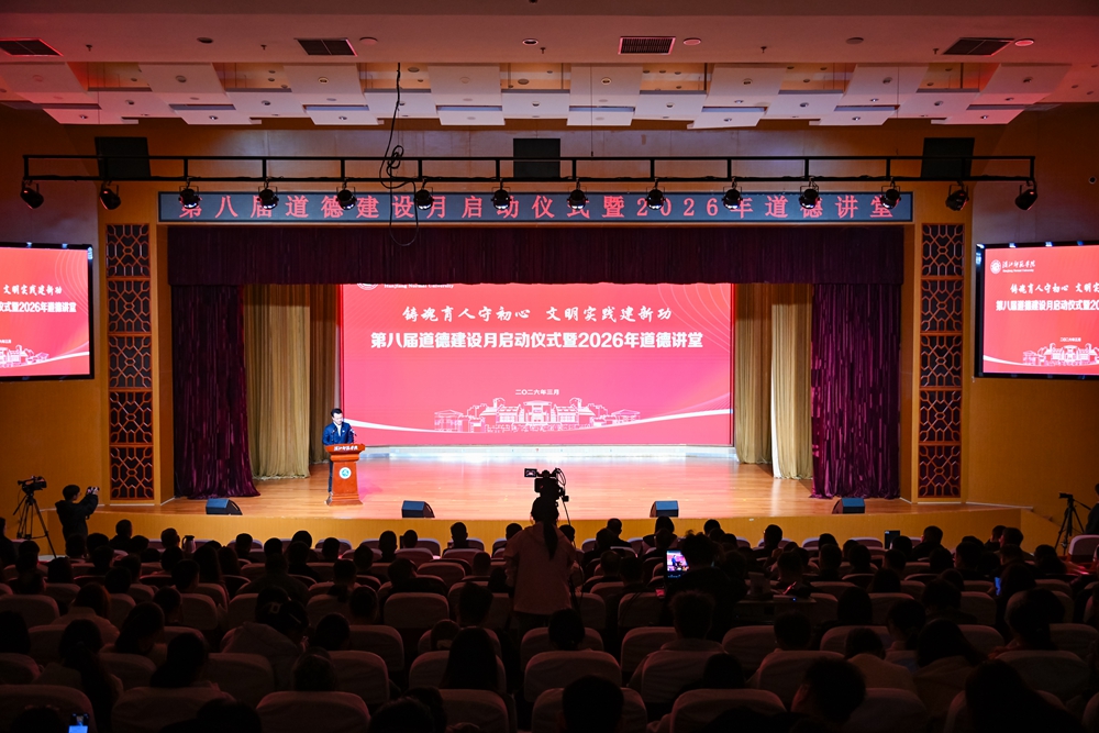 3月29日下午,学校在南风剧场举办第八届道德建设月启动仪式暨2026年道德讲堂。共青团湖北省委副书记徐本禹受邀出席并宣讲志愿服务精神,校党委书记付永昌等全体在家校领导出席,我校第三届道德楷模童安、胡玉及全校五百余名师生代表参加。