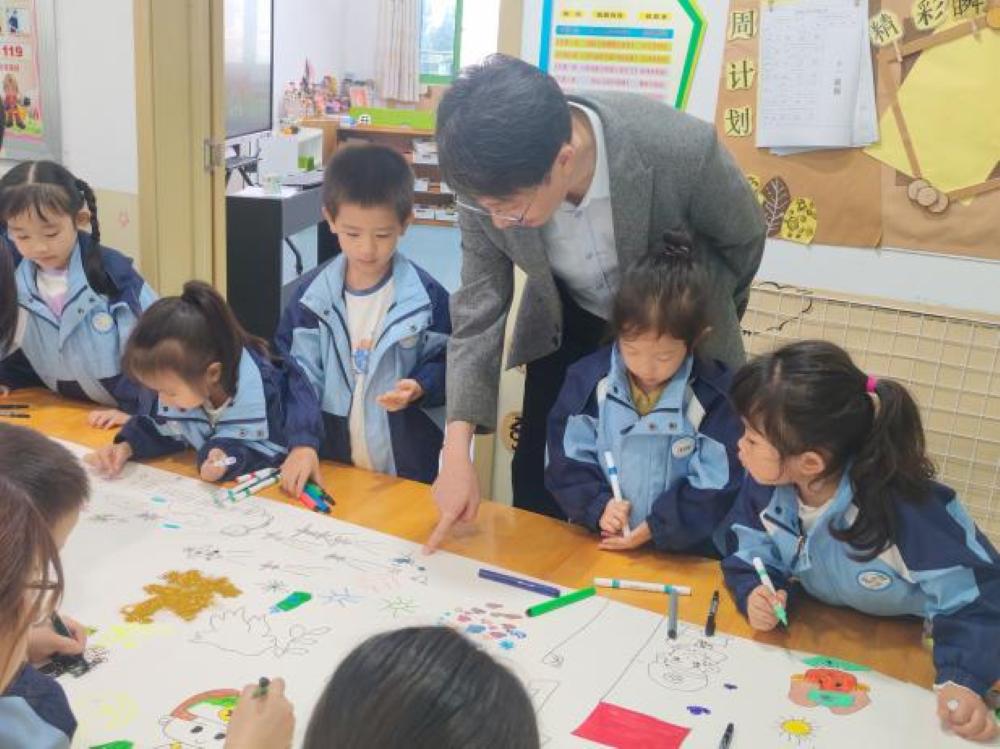 彩绘家园,童心寄情。“红色传承组”的青马班学生通过生动讲解,向孩子们介绍了双节由来与祖国壮美山河。随后,在志愿者和老师引导下,孩子们用五彩油画棒,在画纸上尽情描绘对祖国的热爱与节日的祝福。一幅幅充满童真的画卷,映衬着孩子们清澈的笑脸,传递着深切的家国情怀。