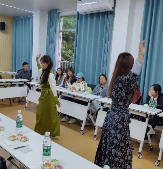 活动的最后,两位藏族同学身着绚丽的传统服饰,以一场精彩的藏族舞蹈将全场气氛推向最高潮。扎西央宗同学与其舞伴用奔放热情的舞姿,淋漓尽致地展现了雪域高原的独特风情与藏族文化的魅力,赢得了满堂喝彩。她们的表演不仅为本次茶话会画上了一个圆满的句号,更以艺术的形式深刻诠释了各民族美美与共、团结友爱的和谐画卷。