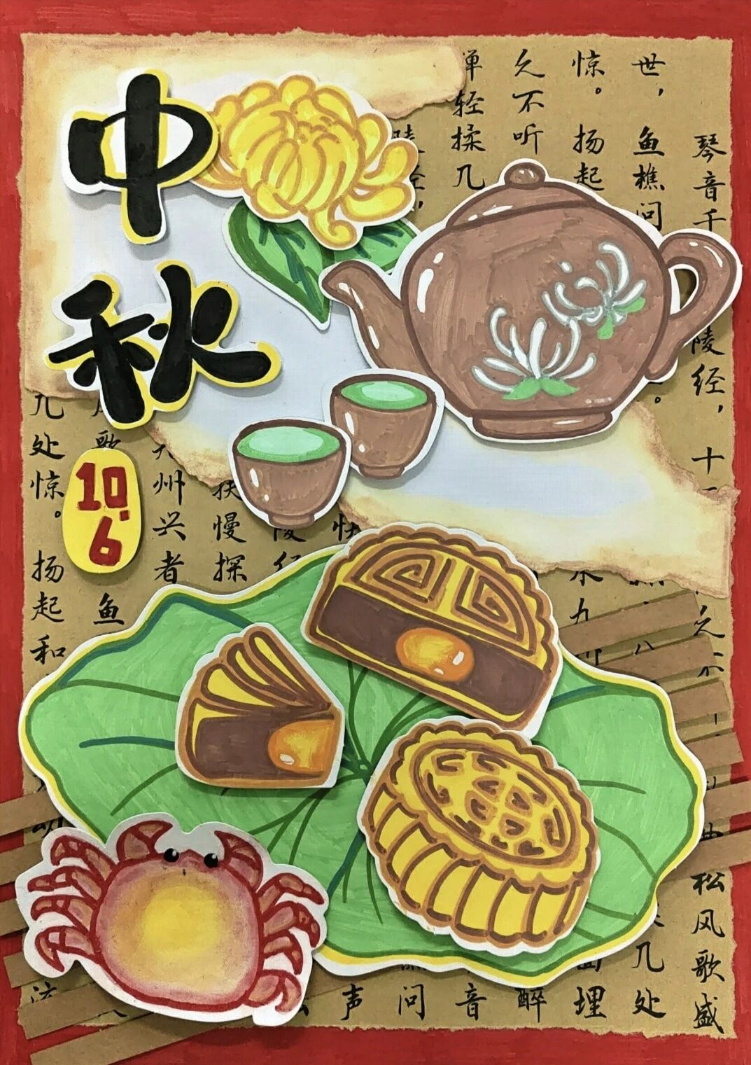 大赛自启动便获全院师生关注响应。10月13日在尚艺楼205教室开展作品收集,共收到不同年级、专业学生百余件参赛作品。现场作品琳琅满目,学生以“中秋”为内核,从 “饼寄相思”“灯映团圆”等维度创作,将中秋元素与现代设计融合,剪纸、泥塑、纸艺等传统技艺在作品中交融。既有以中秋明月为主题的剪纸,细腻刀工展现月亮皎洁圆满;也有玉兔场景手抄报,栩栩如生还原神话意境。既展示出传统手工技艺,更将中秋诗意、对传统文化的热爱与各民族同心之情熔铸其中。