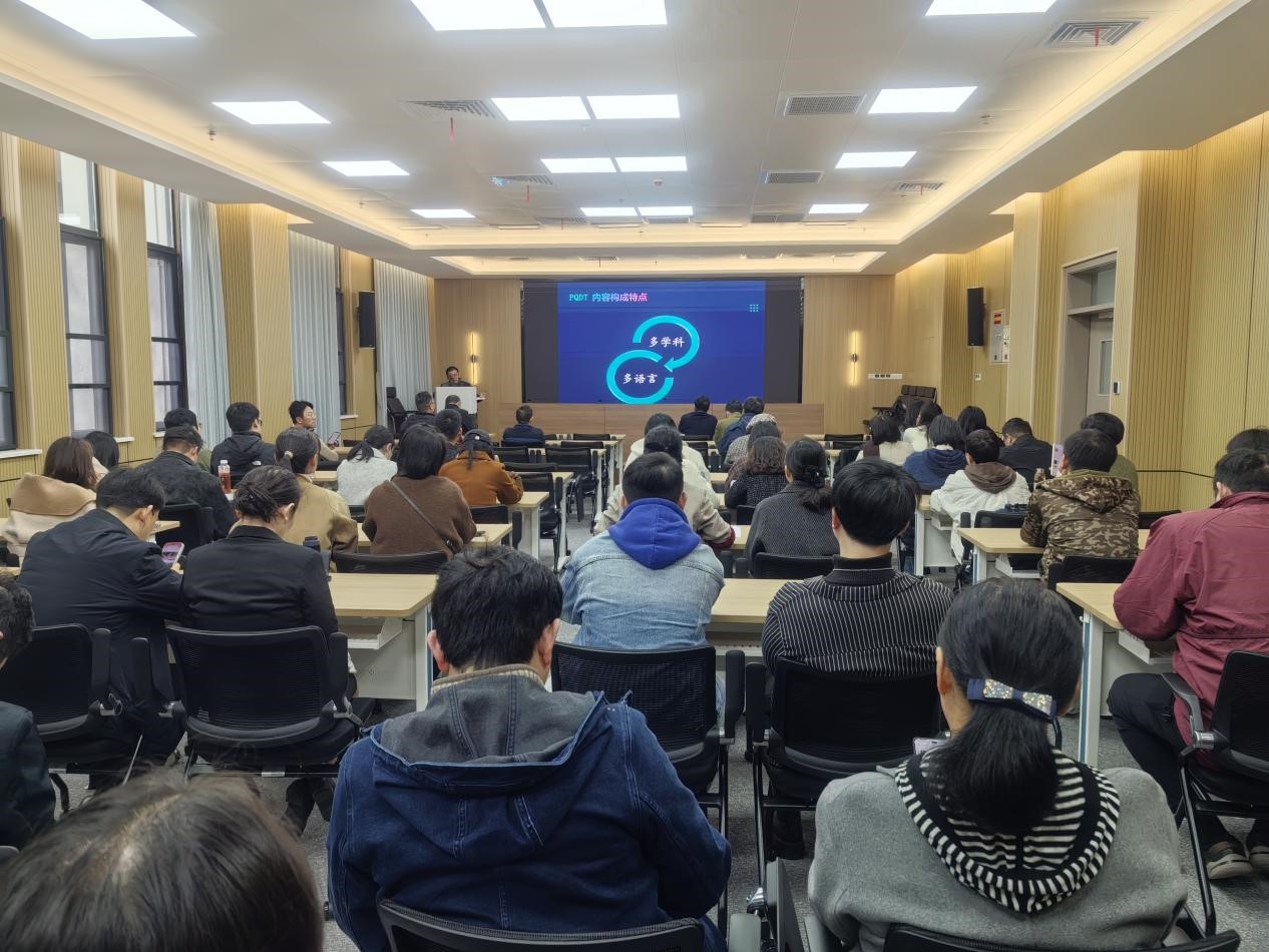 为进一步提升学校已购数字资源的利用率,帮助老师精准挖掘国际前沿学术成果,助力学院科研能力提升,10月23日下午,图书馆分别在化学与环境工程学院、文学院开展ProQuest学位论文全文库(简称PQDT)数据库专题培训,PQDT培训讲师韩长毅主讲,两个学院全体教师参与。