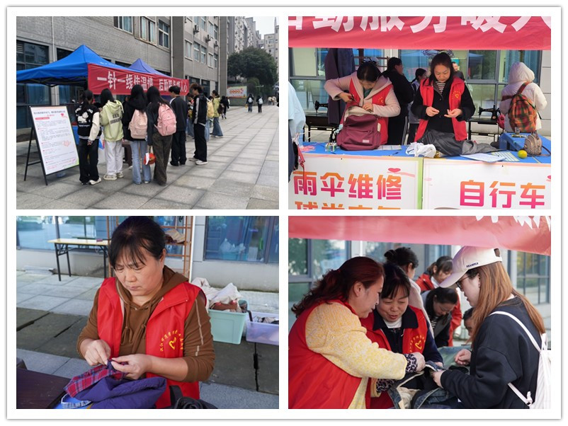 爱心驿站不仅设置了免费衣物缝补区,还新增了低价配钥匙服务,更同步开放了自行车修理等便民项目。首日活动中,宿管阿姨与志愿者们热心接待,引得不少师生驻足咨询、参与服务,排队的同学笑着说:“不用跑校外花高价,在宿舍门口就能解决小麻烦,太贴心了!”