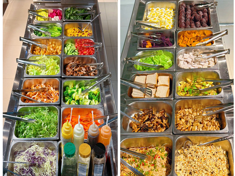 “减脂餐”窗口则严格遵循营养健康配比原则,采用“高蛋白、中低碳水、丰富膳食纤维”的膳食结构,精选鸡胸肉、龙利鱼、牛肉、豆制品等优质蛋白,搭配糙米、燕麦、紫薯等复合碳水化合物,并辅以多种新鲜蔬菜与特调低卡路里酱汁,帮助师生在控制热量摄入的同时,实现营养均衡。