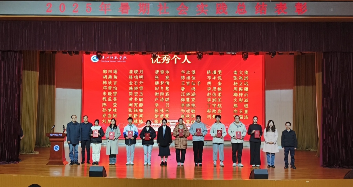11月19日晚,“青春为中国式现代化挺膺担当——2025年暑期社会实践总结表彰暨‘我的实践答卷’青春分享会”在南风剧场顺利举行。历史文化与旅游学院在本次表彰中表现突出,分团委获评“优秀组织单位”,4支实践团队、4名指导教师及11名学生分获优秀团队与先进个人荣誉称号,充分展现了学院实践育人工作的扎实成效。