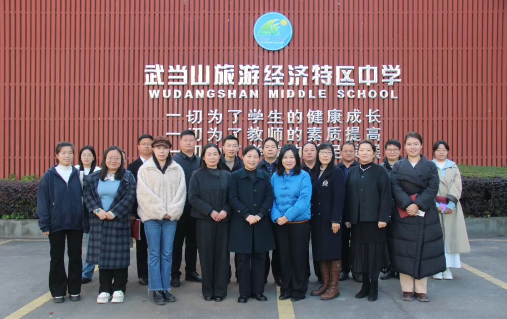 11月 25 日至 26 日,外国语学院院长祝东江、教务处副处长朱琳一行赴武当山中学开展教学教研活动,落实深化校地教师教育共同体建设。武当山特区教育局副局长崔星、武当山中学党总支书记梁庆、校长马成珍、及太极湖学校领导老师参与相关活动。