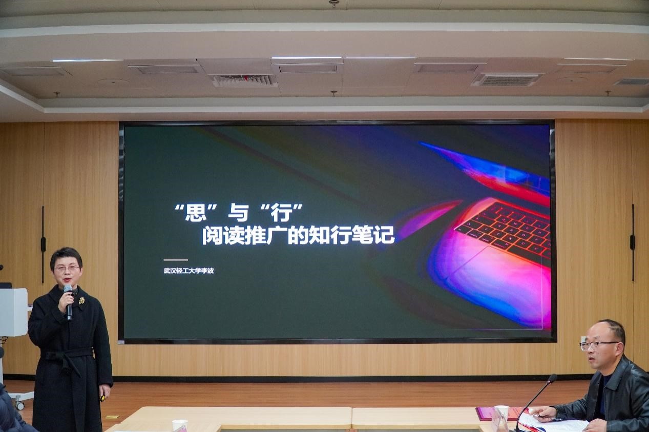 阅读推广经验分享会特邀武汉轻工大学图书馆副研究馆员李波为大家作了《“思”与“行”—— 阅读推广的知行笔记》的专题报告。她重点分享了本校多元化、品牌化阅读推广生态体系构建经验,详细解析了“重新发现”传统文化、“解忧植物园”等特色项目运作情况,并就阅读推广中参与度提升、师生协同、技术赋能等共性问题提出了对策。十堰四所高校图书馆领导、相关同志还围绕新时代高校阅读推广工作的创新与实践进行深入交流与探讨。