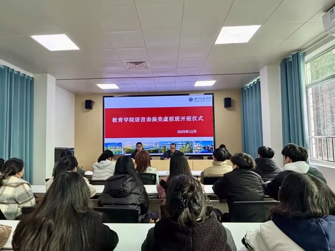 2025年12月18日下午,教育学院语言表演类虚拟班开班仪式在启智楼209教室隆重举行。教育学院院长郭顺峰、分党委副书记张洋、副院长田萍、姚炎昕出席仪式,虚拟班指导老师柯恒波,陈懿,周健及首批入选学生参加开班仪式。