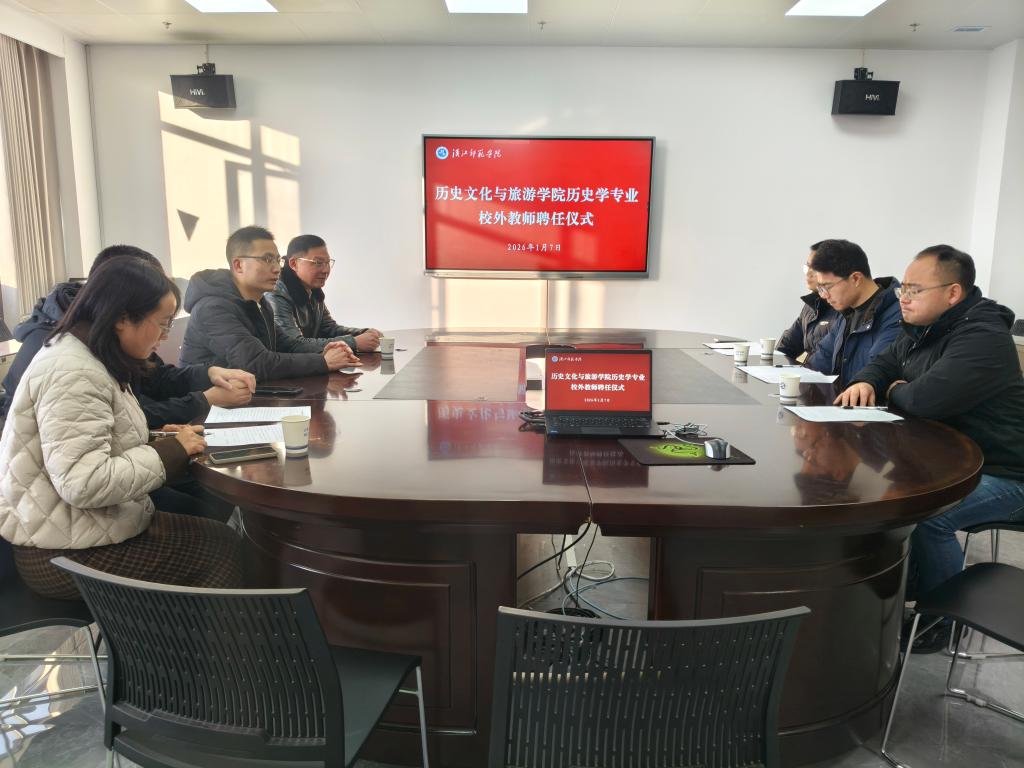 1月7日上午,历史文化与旅游学院在求真楼A0813会议室隆重举行历史学专业校外教师聘任仪式,正式聘请湖北汽车工业学院的严忠良博士、卫怡博士、袁大鑫博士以及湖北医药学院的邵蕾蕾老师组成高水平外聘专家团队。仪式由历史学教研室主任孙浩老师主持,学院院长饶军教授出席并致辞。