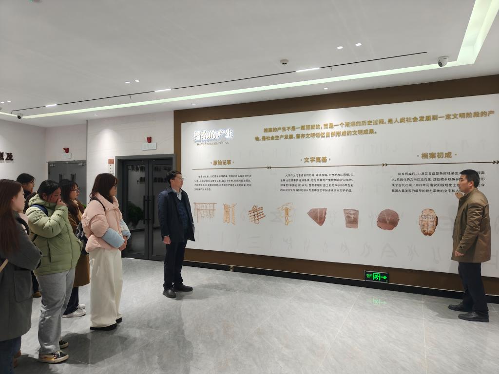 为充分发挥校史馆、档案馆的育人阵地作用,推动思政教育与档案、校史育人深度融合,当日下午,外国语学院分党委书记王官华带领辅导员及学生代表一行走进校史馆与新建档案馆,开展沉浸式校史档案研学活动,让师生在追溯校史、探秘档案中感悟初心、汲取力量。