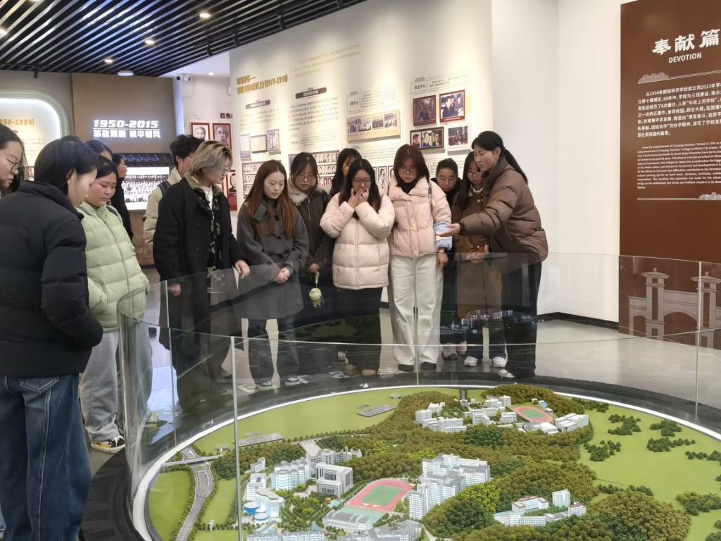 在校史馆内,讲解员张丽同学以学校百年发展脉络为主线,生动讲述了学校自1904年办学以来的峥嵘岁月、奋斗历程和取得的丰硕成果。展陈中,一幅幅定格历史的珍贵照片、一件件承载记忆的斑驳实物、一段段镌刻初心的文字史料,将学校深厚的文化积淀与薪火相传的育人使命具象化,让参观师生仿佛穿梭于百年校史的时光长廊,百年师范育人精神变得可感可知。