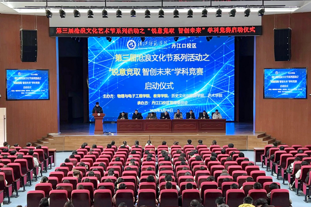 3月24日下午,汉江师范学院丹江口校区第三届沧浪文化节系列活动之“锐意竞取 智创未来”学科竞赛启动仪式在沧浪剧场圆满举办。物理与电子工程学院、历史文化与旅游学院、教育学院、艺术学院、丹江口校区等相关单位负责人参加。