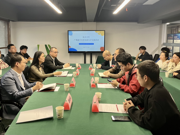 随后,陈院长一行在会议室与青创园相关领导、企业家进行交流。十堰市青创园负责人韩忠平介绍了青创园建设及运行情况。青创园是十堰市政府、茅箭区共青团共同打造的创业孵化基地。双方就电子商务直播实训室以及“经”彩有你众创空间的建设进行了深入交流。