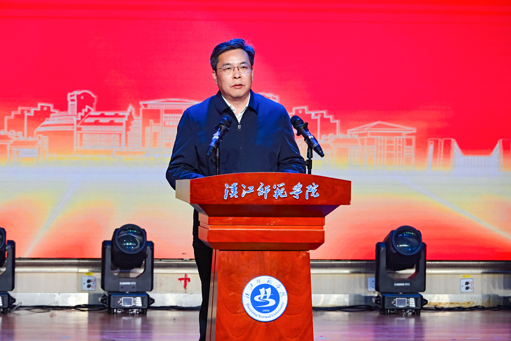 12月28日,正值学校121周年校庆日之际,汉江师范学院“汉师故事”大思政课开讲。课程以“2025,我们的青春答卷”为主题,深度融合思政教育与美育教育,以舞蹈、合唱、讲述、话剧等多种艺术形式为载体,集中呈现了学校“大学工”、“大思政”体系年度育人成果与师生奋进风貌。校党委书记付永昌出席并作首讲。