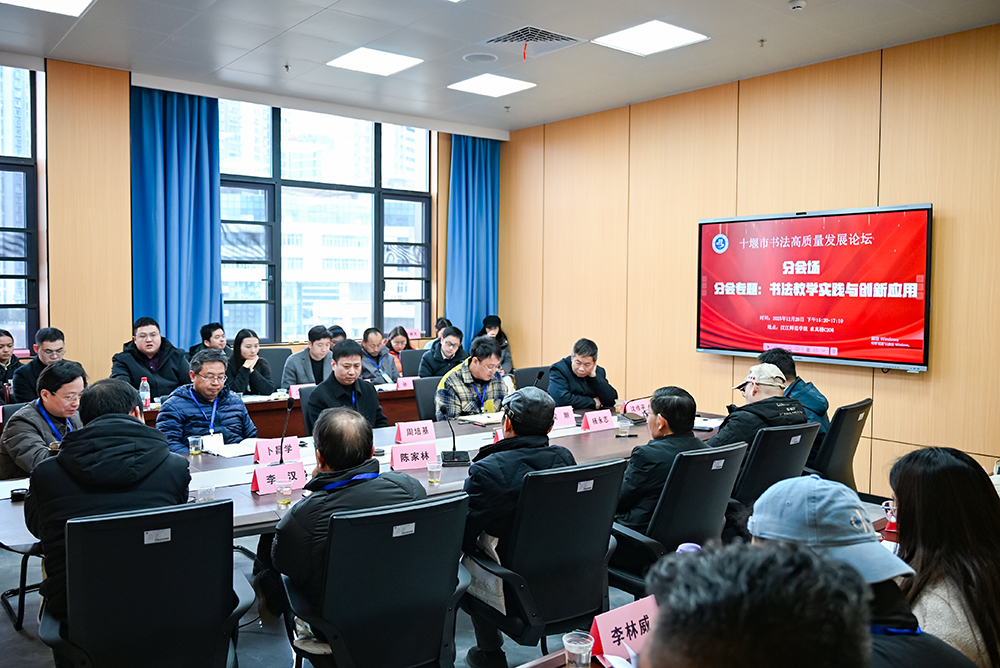 下午两点,论坛分设“书法资源整合与协同发展”“书法教学实践与创新应用”两个主题分会场,在求真楼同步开展研讨。来自十堰市各级书协、群艺馆、大中小学及书法培训机构的代表,与学校书法教研室师生围绕书法临创转换、人才培养、特色创新、普及推广等热点问题深入交流,进一步凝聚校地协同发展共识,明确书法教育创新与资源整合的具体方向。随后的闭幕会对研讨成果进行总结梳理,为后续合作奠定坚实基础。