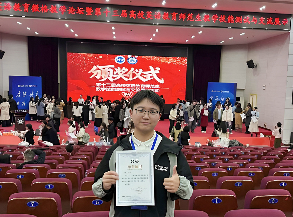 进入大四学年以后,我有幸被学院选派参加各项师范生技能竞赛。在学院领导和老师的悉心指导下,我陆续在国家级和省级赛事中取得突破,荣获第十三届湖北省普通高校师范专业大学生教学技能竞赛省级三等奖,第十三届高校英语教育师范生教学技能测试与交流展示活动国家二等奖,第十届“田家炳杯”全国师范院校师范生教学技能竞赛国家二等奖,第七届中国高校外语学科发展联盟师范类院校未来教师素质风采展示活动国家二等奖。这些荣誉不仅是对我专业能力的肯定,更是对我教育信念的激励。